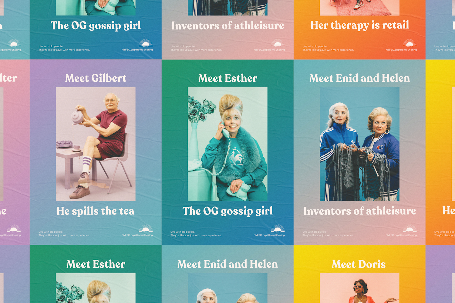 This campaign’s aim is to create awareness among New Yorkers, particularly millenials living in the city, on NYFSC’s Home Sharing Program, which allows senior citizens to be safely matched with housemates of all ages, based on similar interests and living styles. Featuring playful phrases, bright gradients and, of course, some of New York’s coolest senior citizens, this campaign proves age really is just a number.